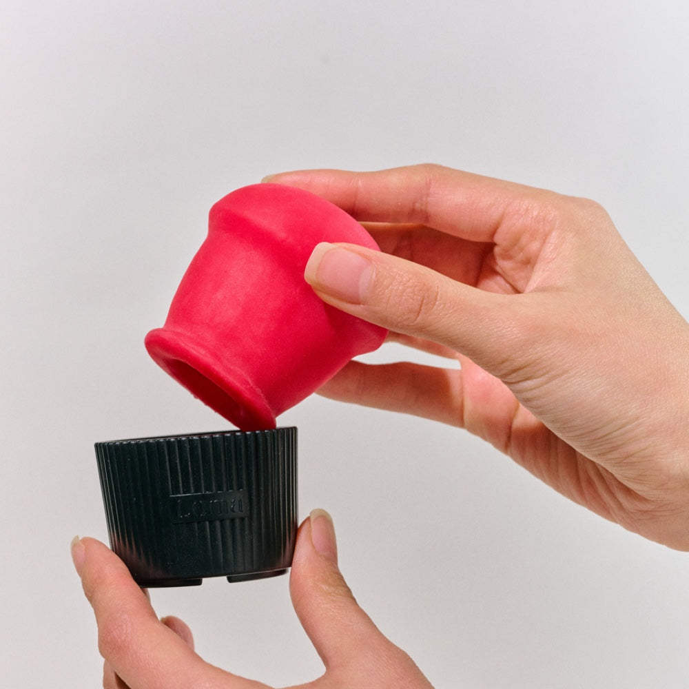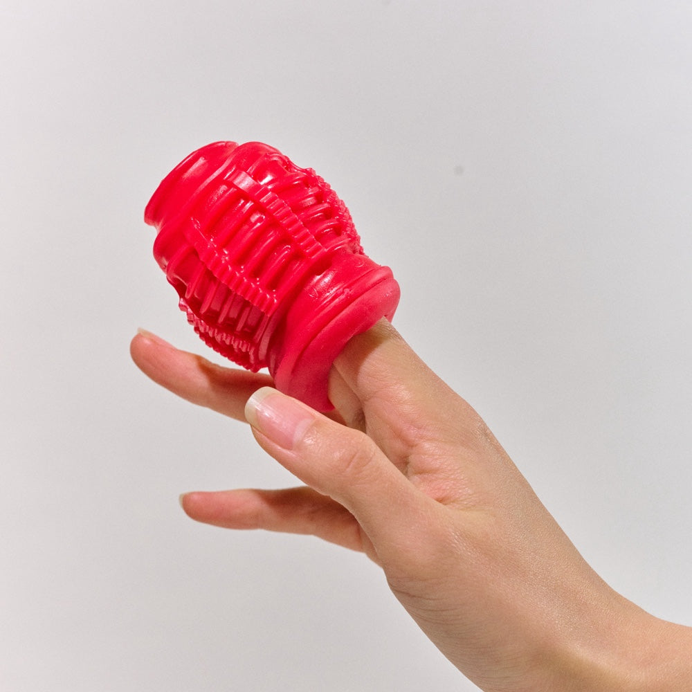 Oh my… this tiny Muffin! The hole isn’t tight, quite spacious. The cute red muffin "swallows" the mushroom head. Great for holding with fingers and squishing. Very stretchy too. Stimulation wasn’t that strong for me. It has bumps, but it doesn’t seem like it’s meant for heavy rubbing. Twisting while holding the head makes the bumps’ purpose clearer. At first I wondered why I bought this instead of a Candle, but like a car or running shoes, you need to try it multiple times to understand how to use it right for your style. Cleaning is excellent. The cup has holes in the base so it dries great. Portable too. A nice small item to place next to your laptop.